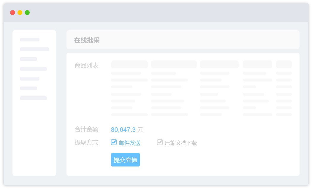 支持多个品类、多个规格数字权益商品的集合采购,卡密信息支持通过邮件、压缩包提取。卡密提取支持二次权限认证。