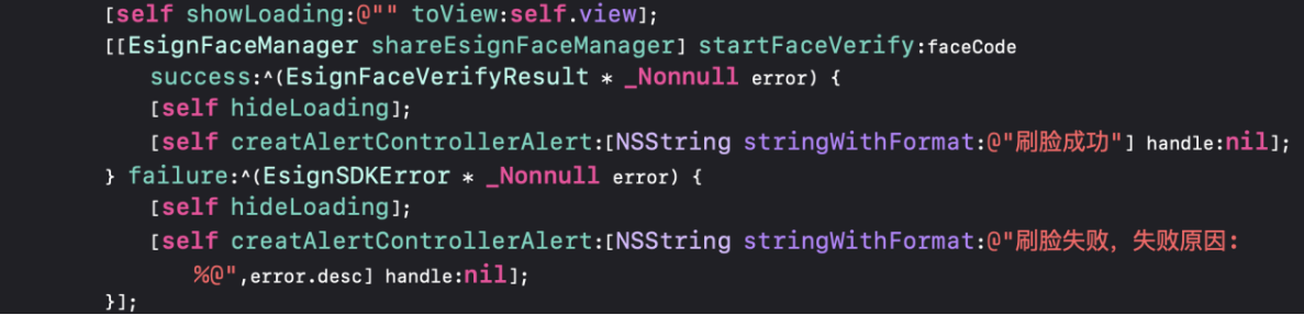 - (void)startFaceVerify:(NSString *)faceAuthCode