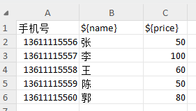打开Excel文件,列名需与短信变量一一对应,如「姓名」「订单号」。