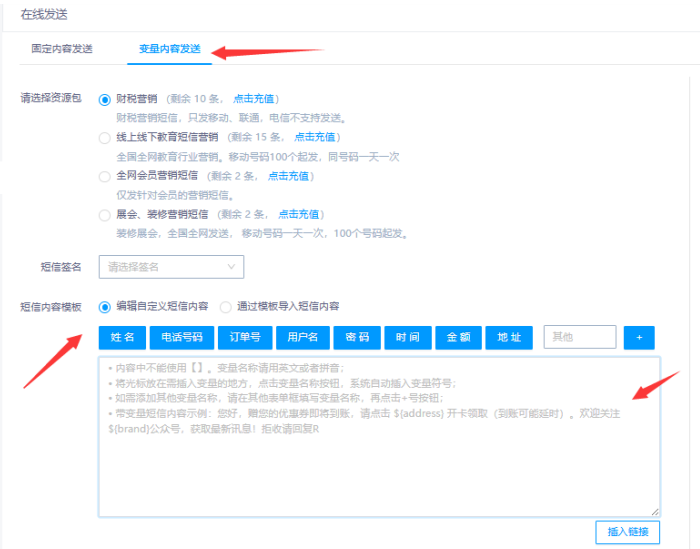 说明:营销短信变量须使用 ${variable}格式。
