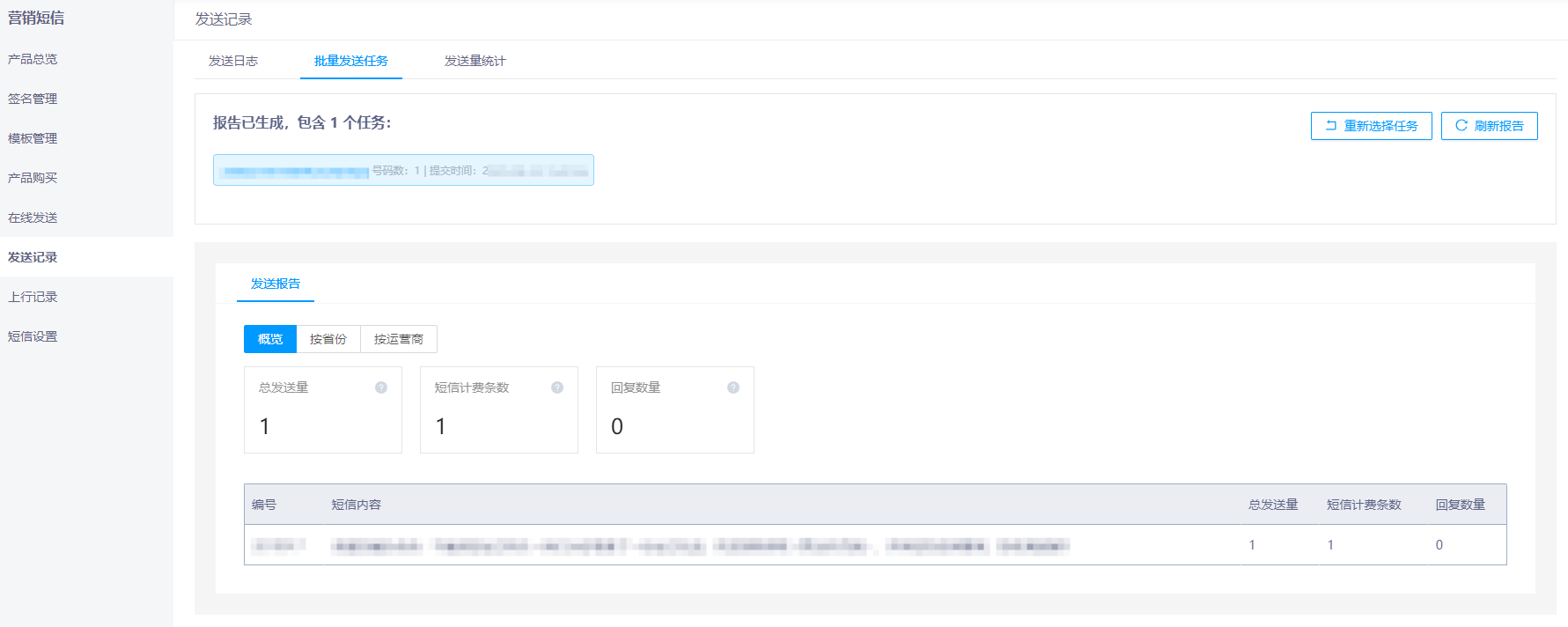 如需查看该任务详细的发送报告信息,可以点击该任务操作栏中的【查看报告】按钮。