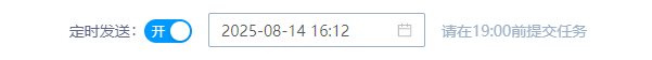 5、如果需要短信在指定时间自动发送,可以开启“定时发送”功能,并设置发送时间,每日发送任务需在19:00前提交。