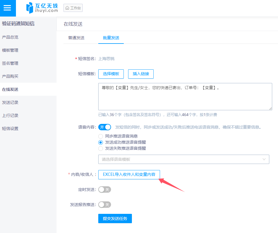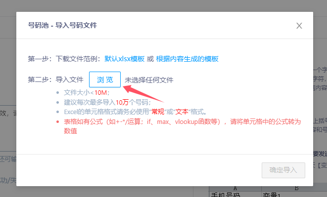 2)、如果内容中包含【变量】,则仅支持通过Excel导入。