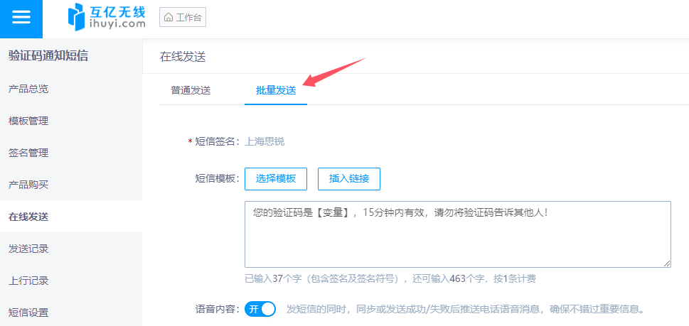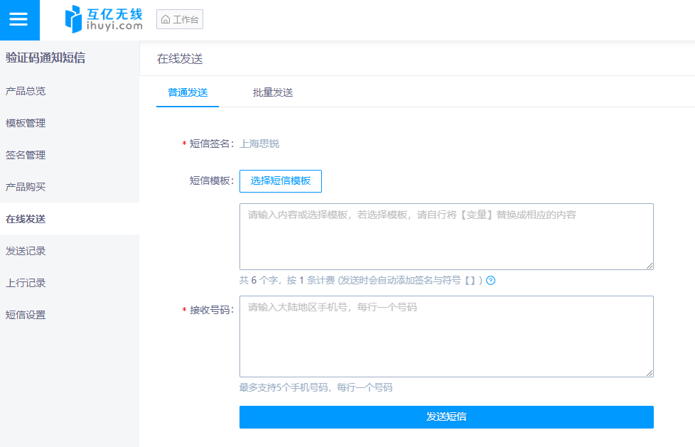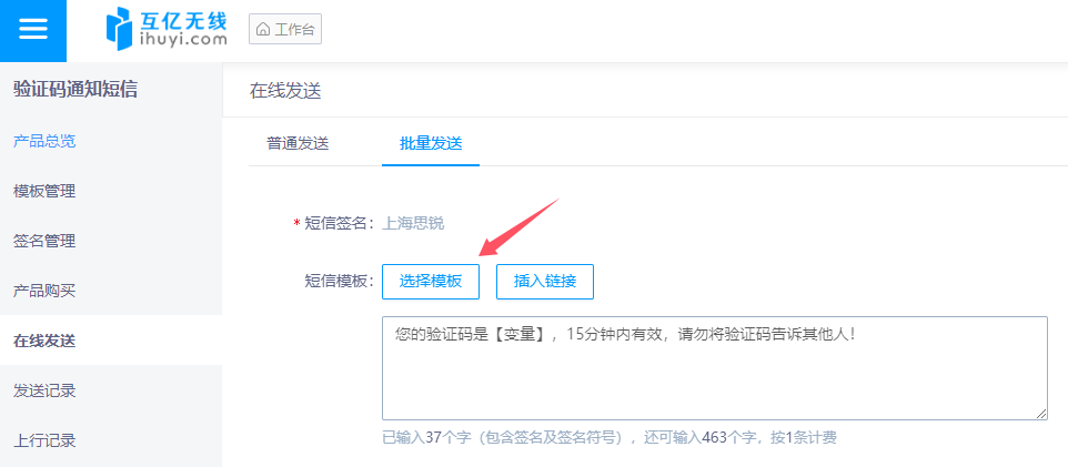 2、可以手动输入短信内容,或选择已报备的短信模板。