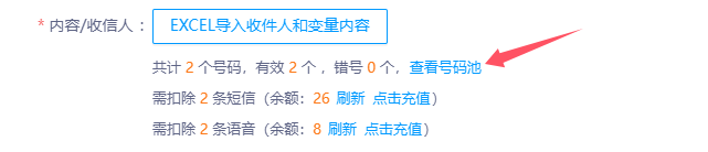 发送前可以点击【查看号码池】按钮,查看完整的短信内容。