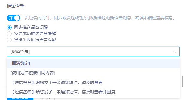 4、按需开启语音推送,设置“同步推送”“发送成功推送”或“发送失败推送”。