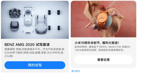 AIM短信是传统短信的升级版,通过手机终端短信增强技术,将传统短信解析为富含图片、视频、图文、卡片的富媒体消息,在终端展示上显示丰富,形式多样。目前可选的AIM短信版式有:图文、多图文、横滑、图片轮播...