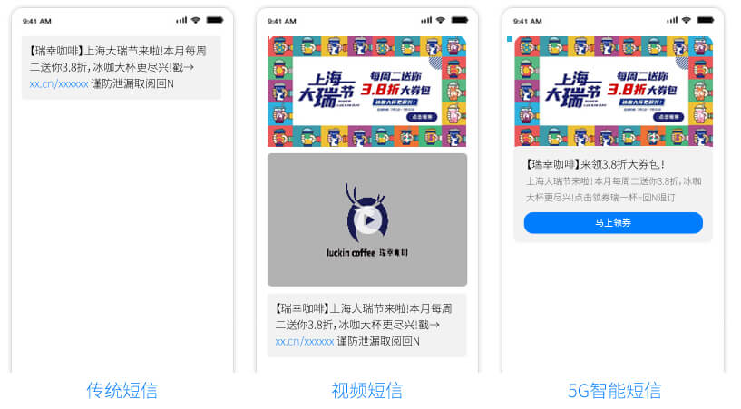 突破传统短信与视频短信的技术能力,更多元化的预订内容展示,支持图文模板、视频播放、红包、卡券等样式。同时可为图片、视频与按钮增加交互事件,如唤起APP应用、打开小程序、跳转H5链接、拨打电话能力。简单明了,提高终端用户体验,引导终端用户直达预订场景,增强与客栈间互动。