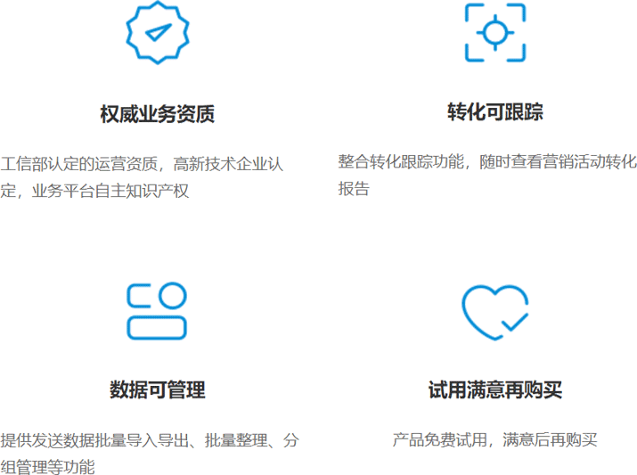 虽然市场上的短信营销平台看起来有非常多,不过资质齐全的却凤毛麟角,不小心碰上没资质的小平台,淘宝群发短信发送不稳定的问题严重,账号信息安全也没有保证,如果用户信息泄露,商家的信息财产安全会受到非常严重的损失,因此,资质审核必不可少,重要的企业营业执照、sp证、通道码号证书一个都不能少。