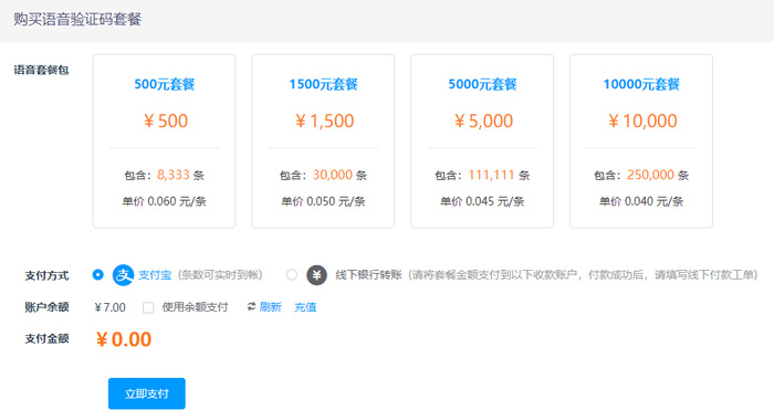3、在线自助购买语音验证码服务