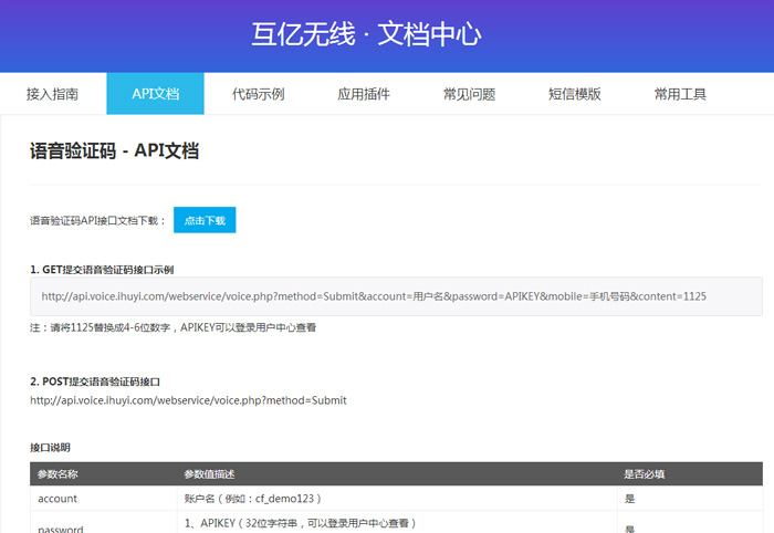 互亿无线提供简单易用的语音验证码API接口文档:https://www.ihuyi.com/api/voice.html