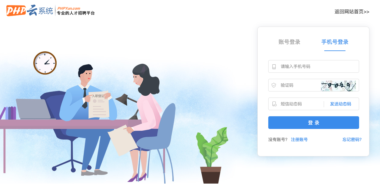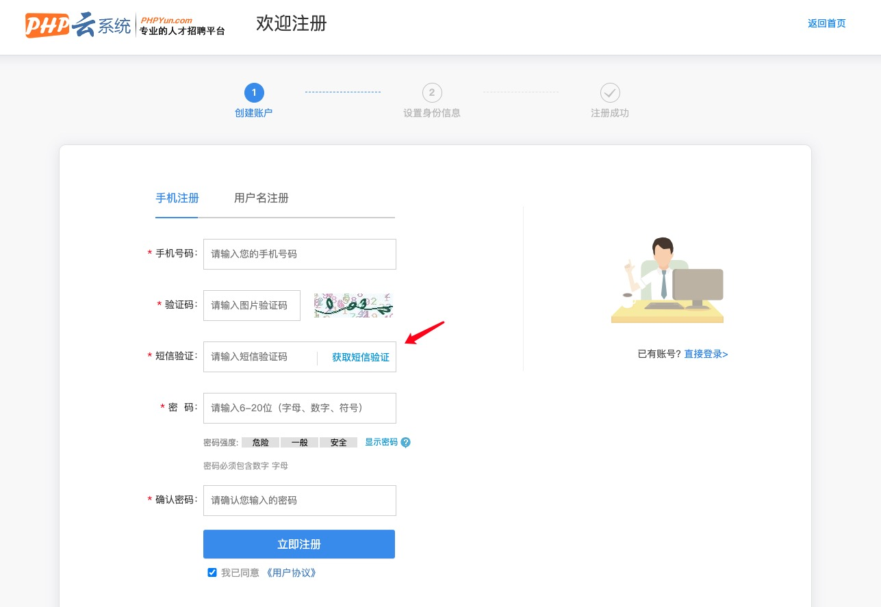 配置成功后,可登录Phpyun用户注册页和会员手机号登录页,填写手机号码并测试。