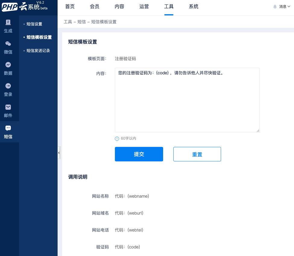 Phpyun模板:您的验证码是:{code},请勿泄露给其他人。