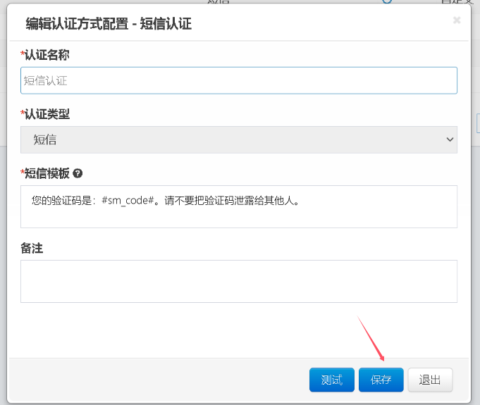 收到短信后,在点击弹窗中的【保存】按钮,完成短信认证的配置操作。