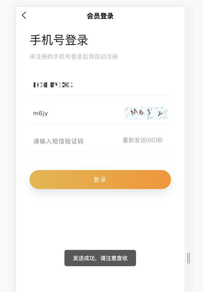 配置成功后,可访问用户“手机号登录”页,填写手机号码并获取短信验证码,查看是否收到短信。