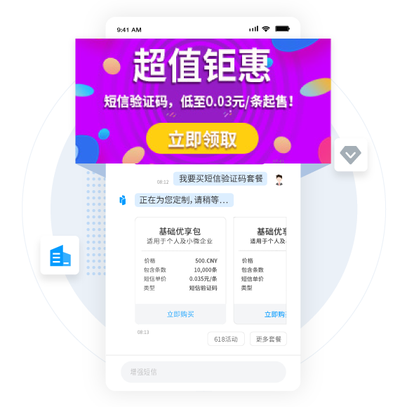 支持多图文、视音频、短信小程序发送,内容形式更多样,应用场景更丰富,用户转化率更高